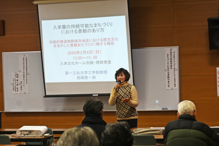 | 第一工科大学の学生さん、先生には、入来花水木会主催の第1回入来麓たのしいまち歩き(2022年10月開催)に参加頂いたのを皮切りに、入来麓との交流を深めて頂き、入来麓の景観をテーマに調査・研究を行って頂いた。デザインコード、情報通信技術、データサイエンス、ドローンといった新しい技術を活用して調査・研究された入来麓の景観についての学術的成果を、沖縄琉球大学や台湾南台科技大学等における国内外の学会発表の場で発表された。今回、これまでの調査・研究の総括をして頂きながら、人口減少が進む今日の社会構造における景観まちづくりのあり方について、西嶋啓一郎先生にアドバイスして頂いた。 | |||||||||||||||